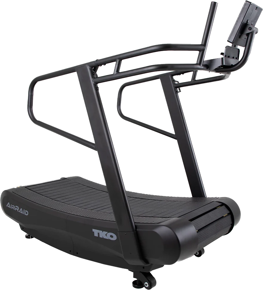 AirRaid Runner offers the benefits of a self powered treadmill as well as the option of 4 levels of resistance for higher intensity interval training. The belt gives a impact reducing molded slats on sealed bearings for a smooth and quiet movement. Perfectly placed handrails for causal walking or intense push sled simulation. The console is equipped with interval training programs that are perfect for Crossfit and HIIT.